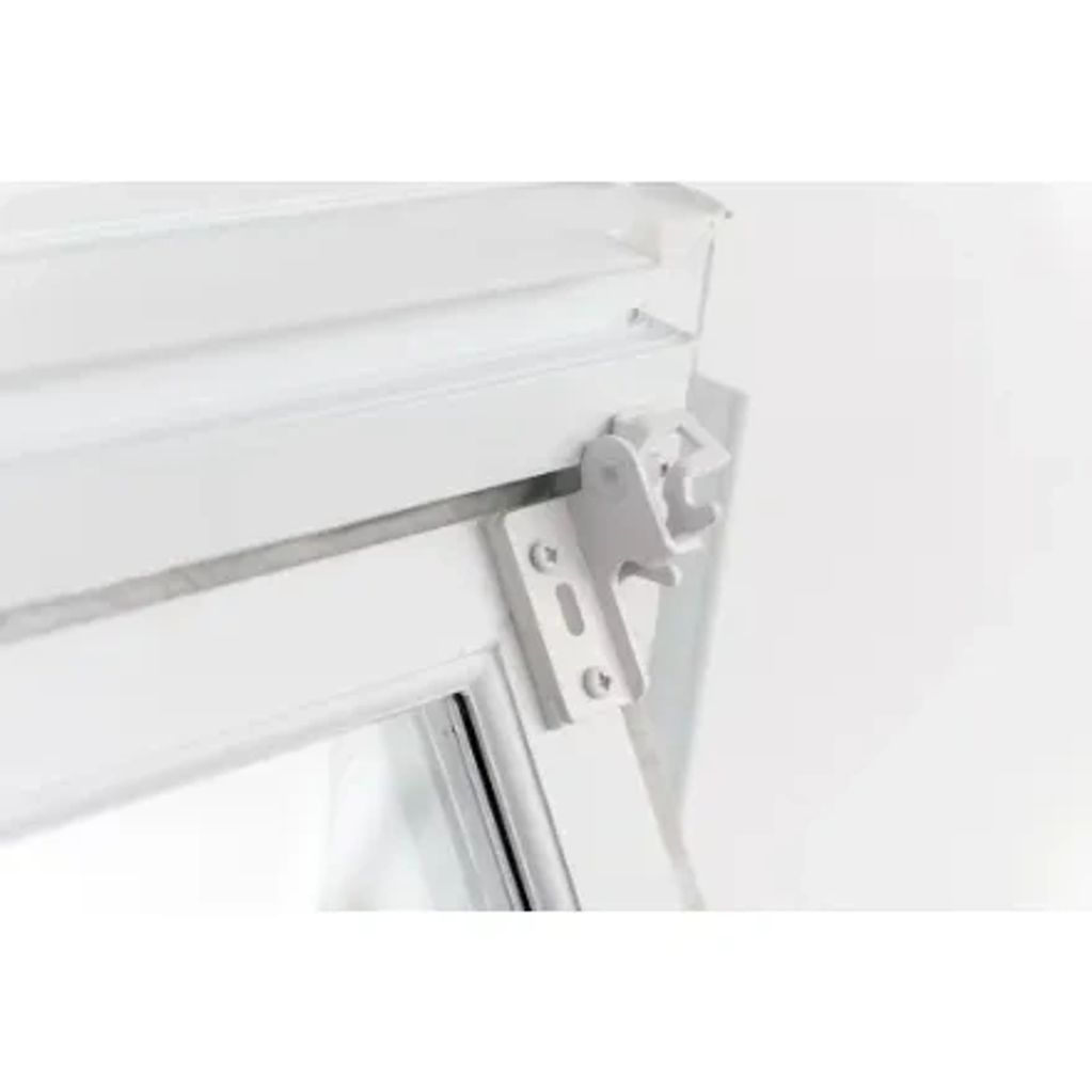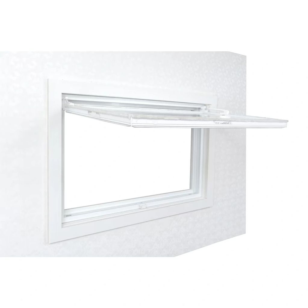 Ces fenêtres à trémie en PVC blanc sont conçues comme des fenêtres de sous-sol pour répondre aux exigences canadiennes en matière d'évacuation. Elle est articulée sur le dessus avec des renforts, s'ouvre vers l'intérieur et le châssis est facilement amovible pour permettre une ouverture maximale. La quincaillerie permet de maintenir l'ouvrant en position ouverte. Elle comprend une serrure à point